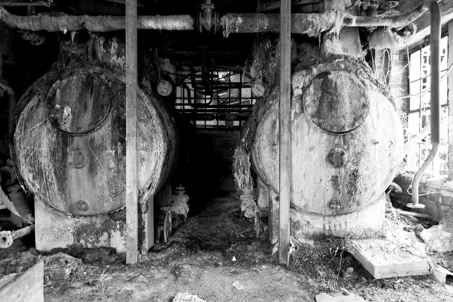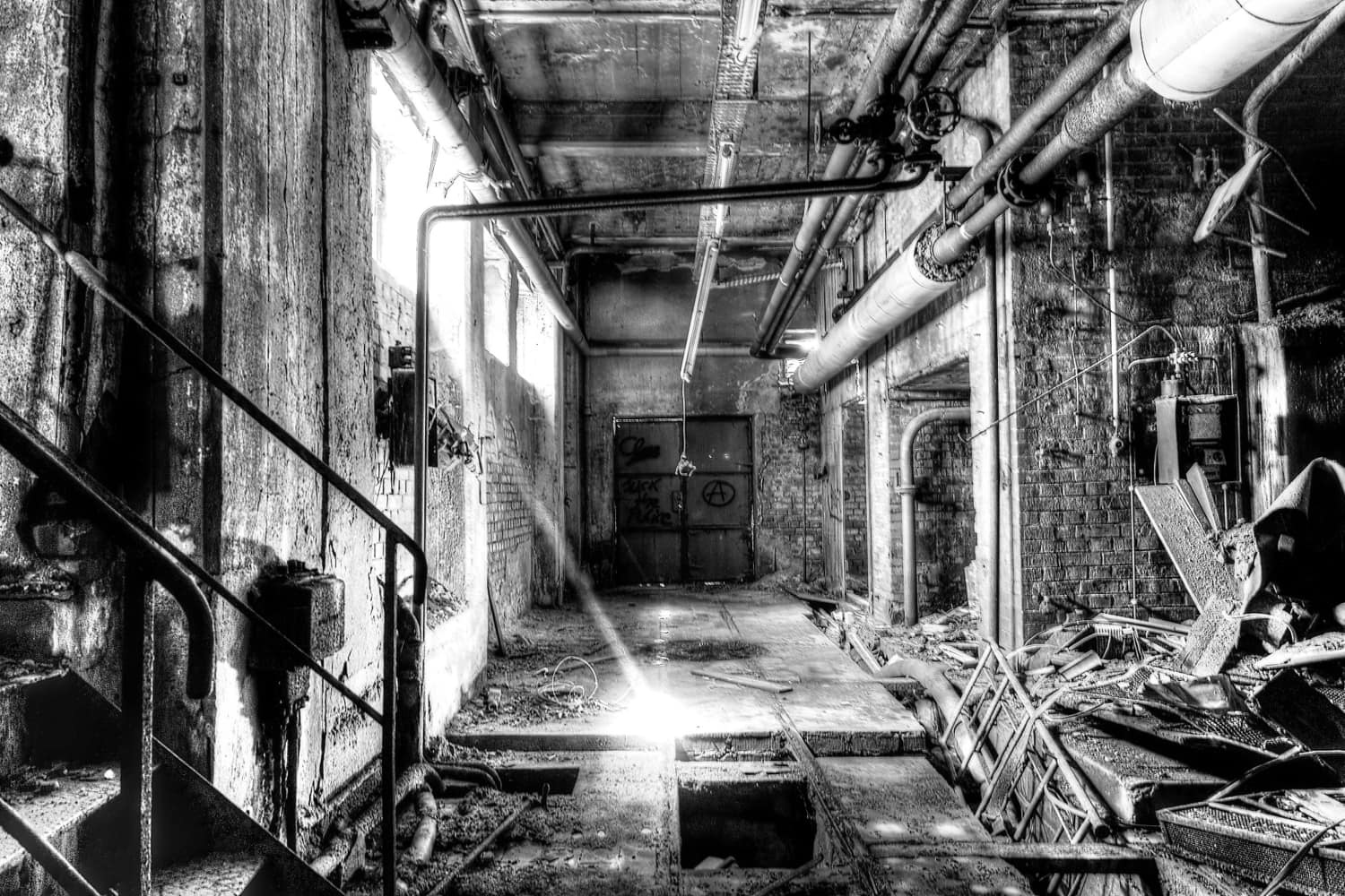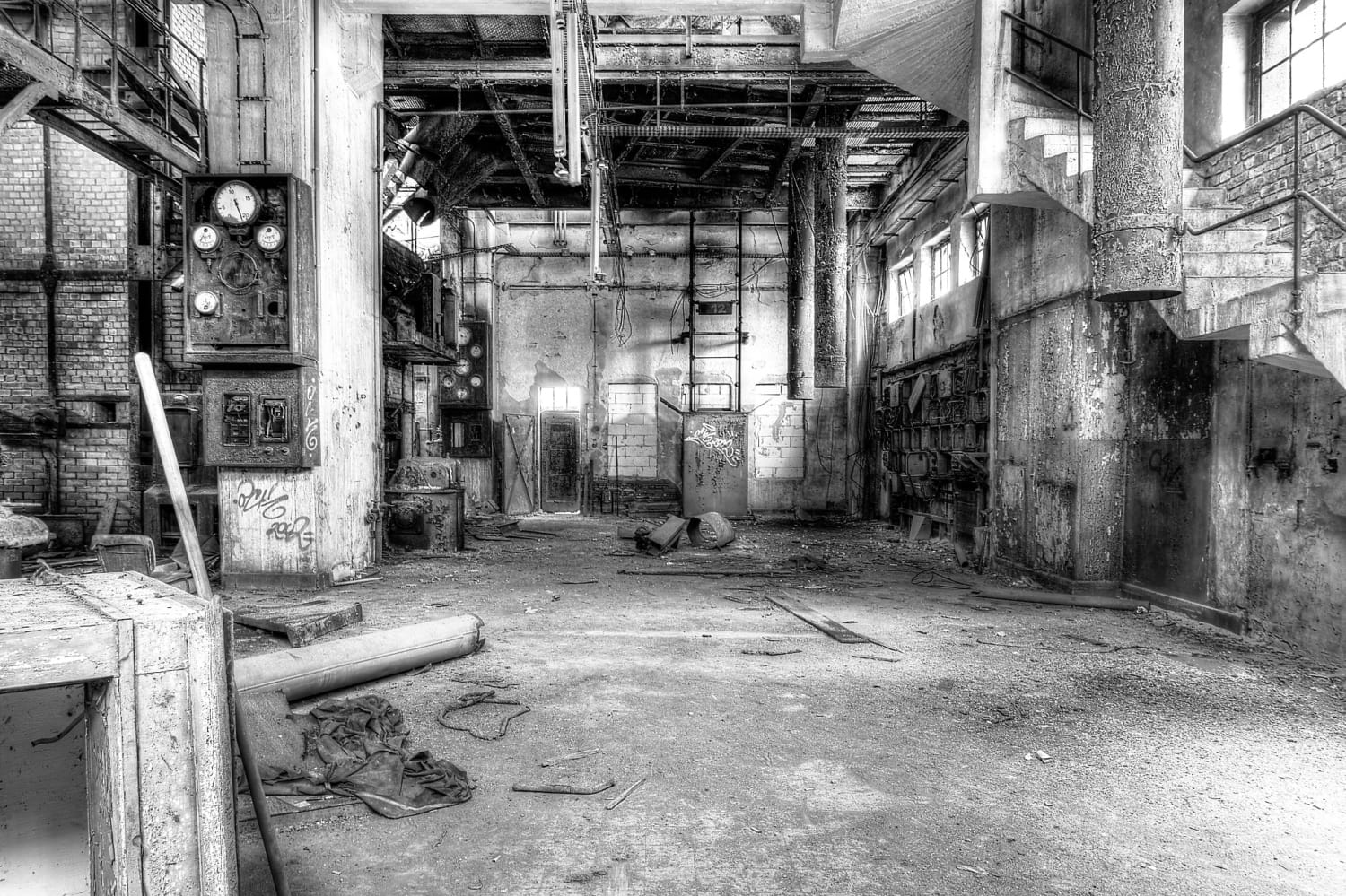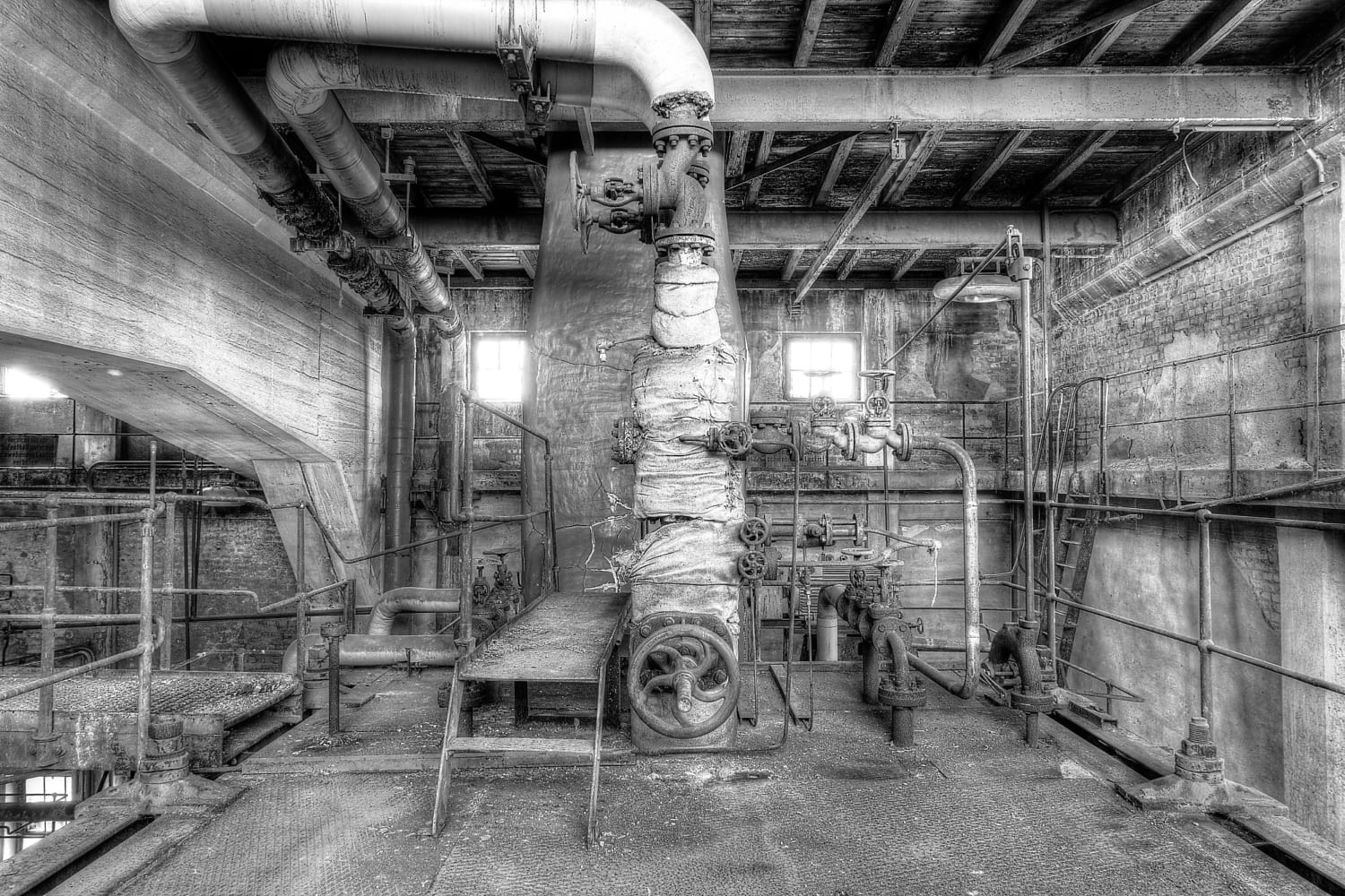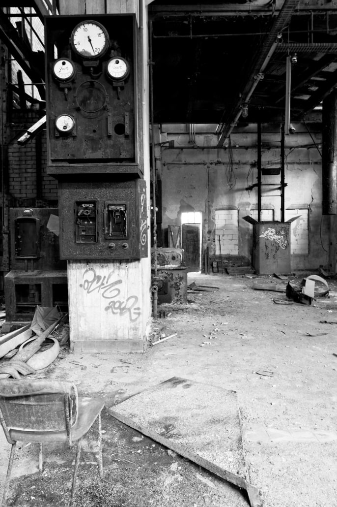 Ein fantastischer Ort, viele Blickbeziehungen und ein Gewirr an Leitungen, Rohren und eine Menge Dreck. Leider sind ein paar Fotos versaut, sie stammen noch aus der „HDR- Bilder-Phase“. War früher mal Modern gewesen :). Wer mehr Informationen zum Kraftwerk hat, meldet sich bitte.