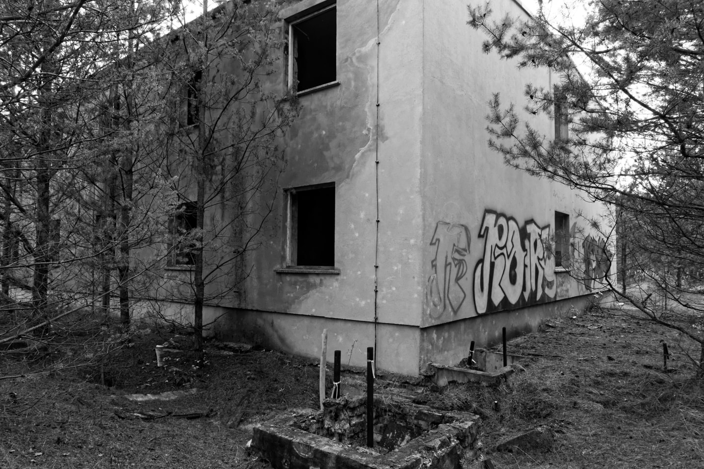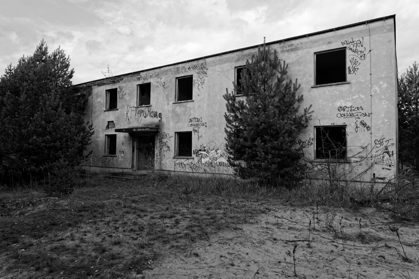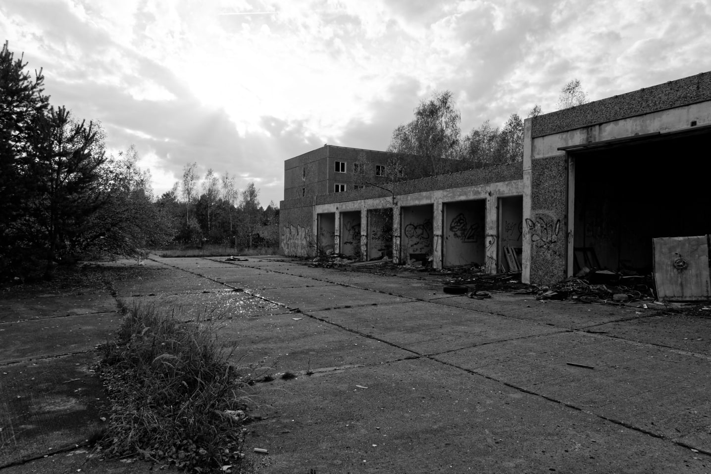 Das ursprünglich umzäunte Gelände besteht einem Kontrolldurchlass mit Wachgebäude, zwei Unterkunftsgebäude mit zwei Stockwerken, ein Plattenbau mit vier Stockwerken, Garagen, Werkstätten, Heizhaus sowie Ver- und Entsorgungsgebäude. 1