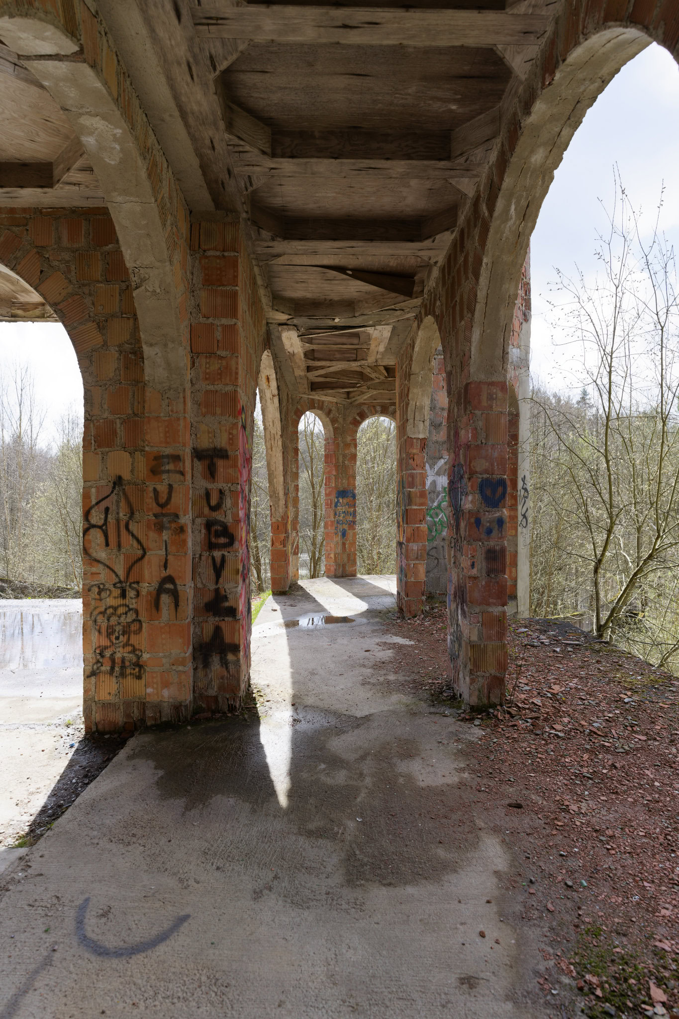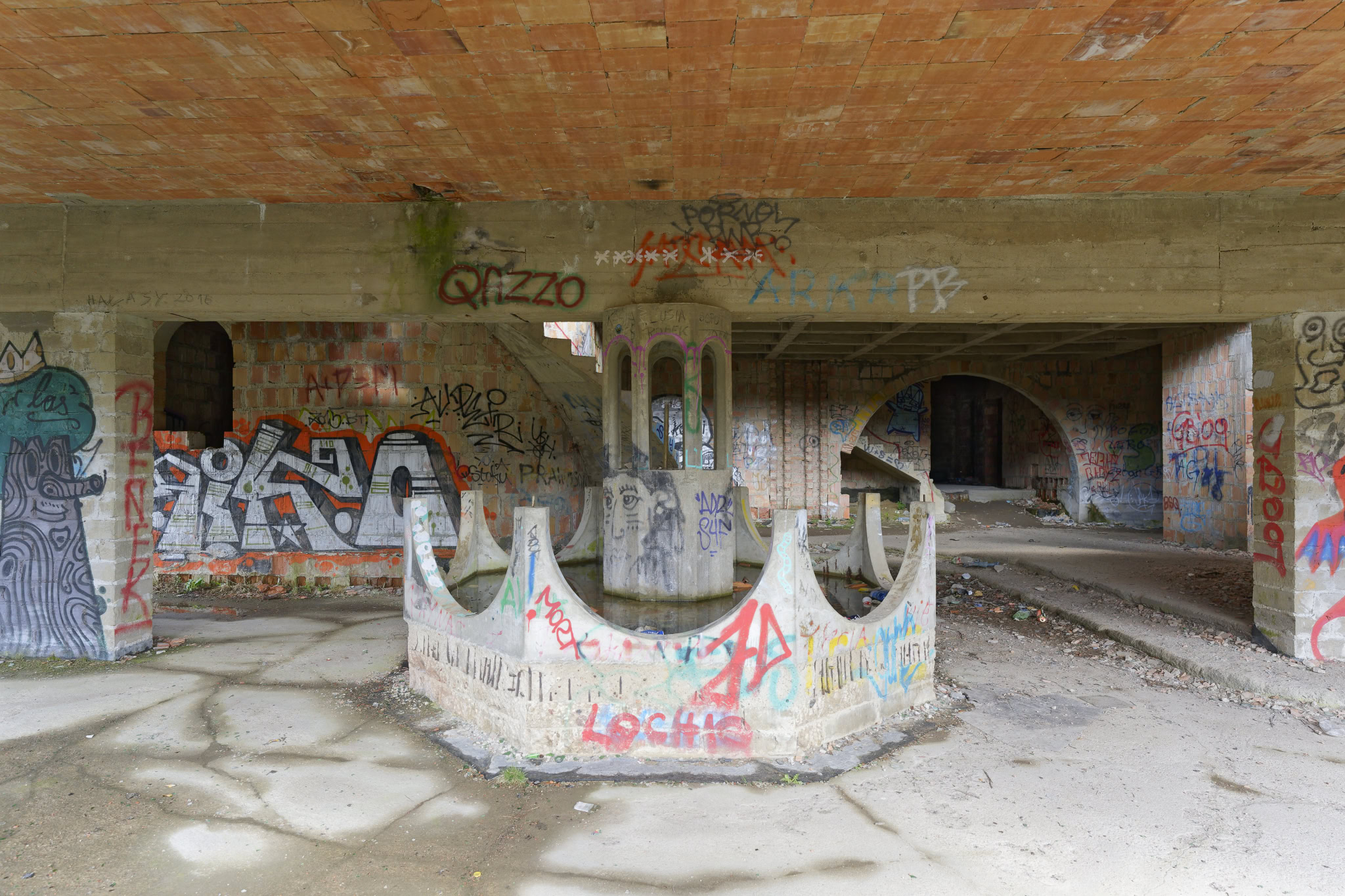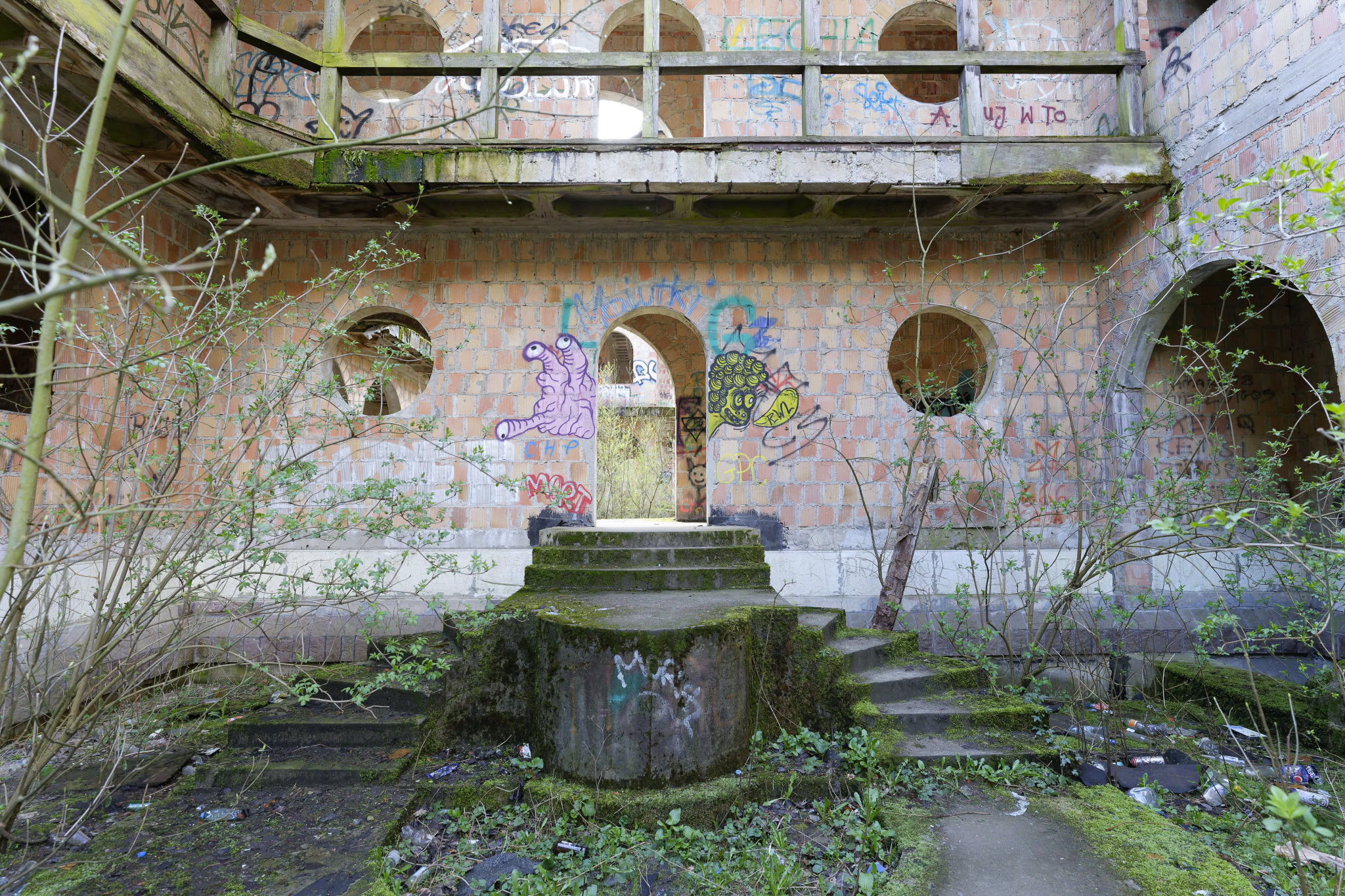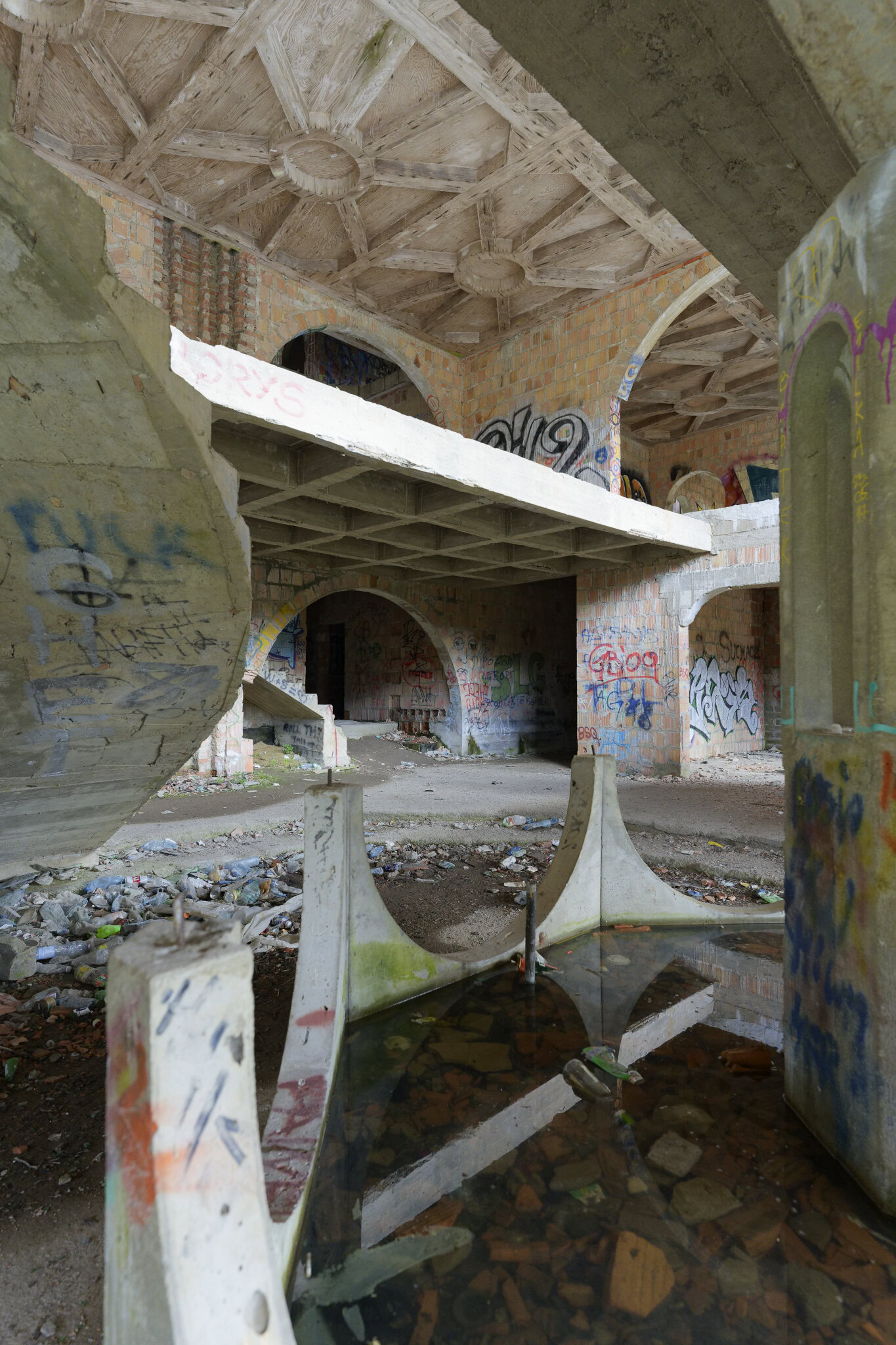 Wie der Teich aber einmal hübsch werden sollte, ergibt sich mir nicht. Diese Betonwanne mit ungleichen höhen ist überhaupt nicht einladend. Aber wer weis schon, wie es hätte am Ende aussehen sollen.