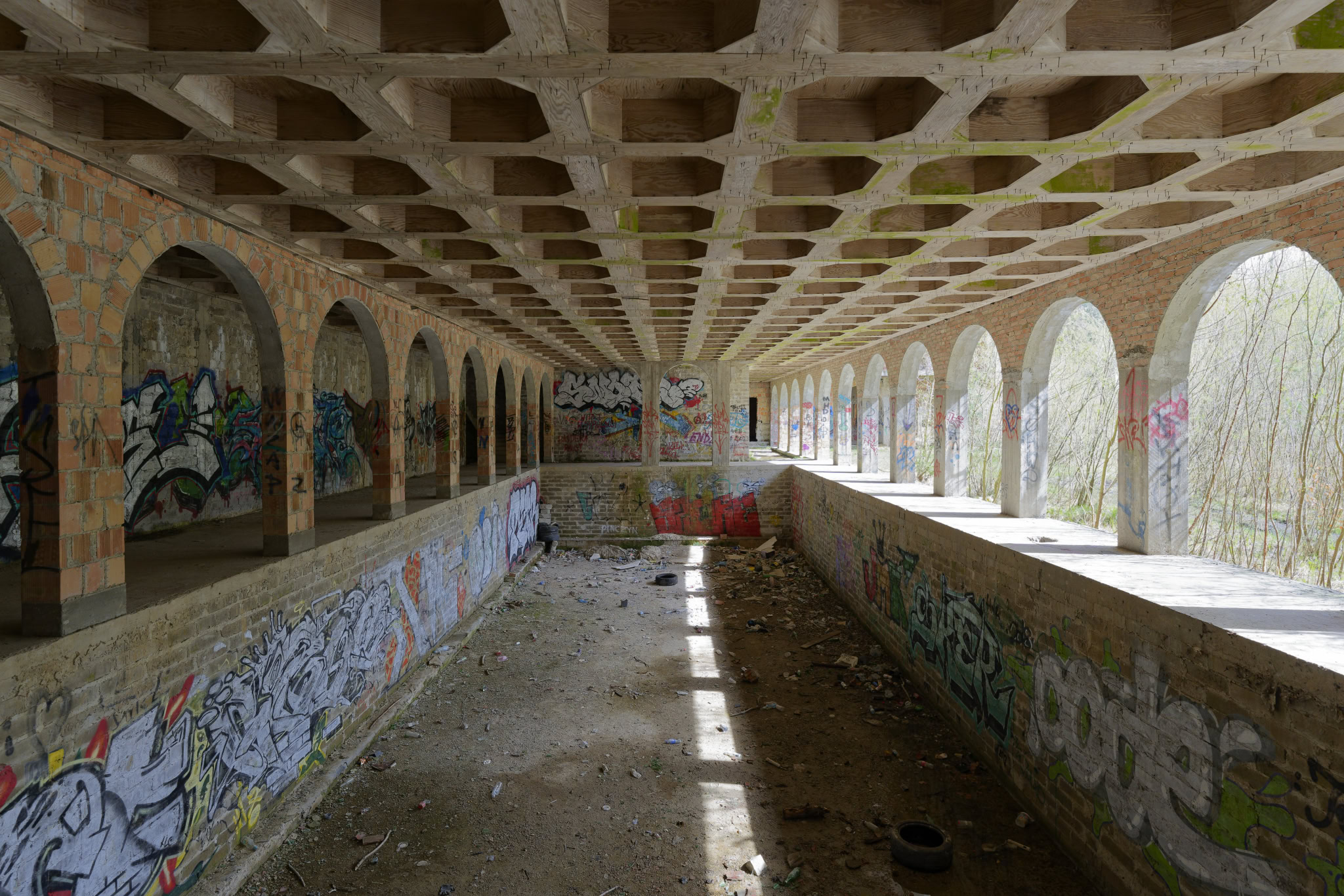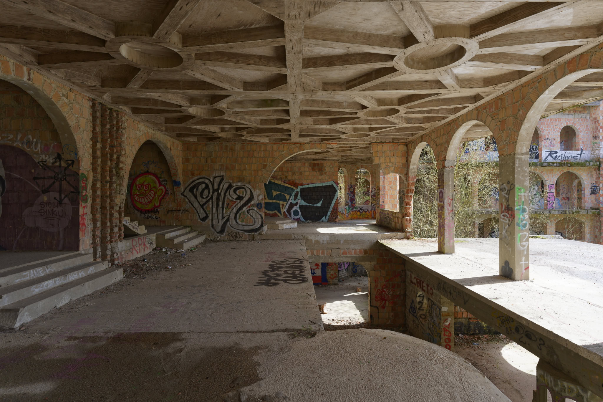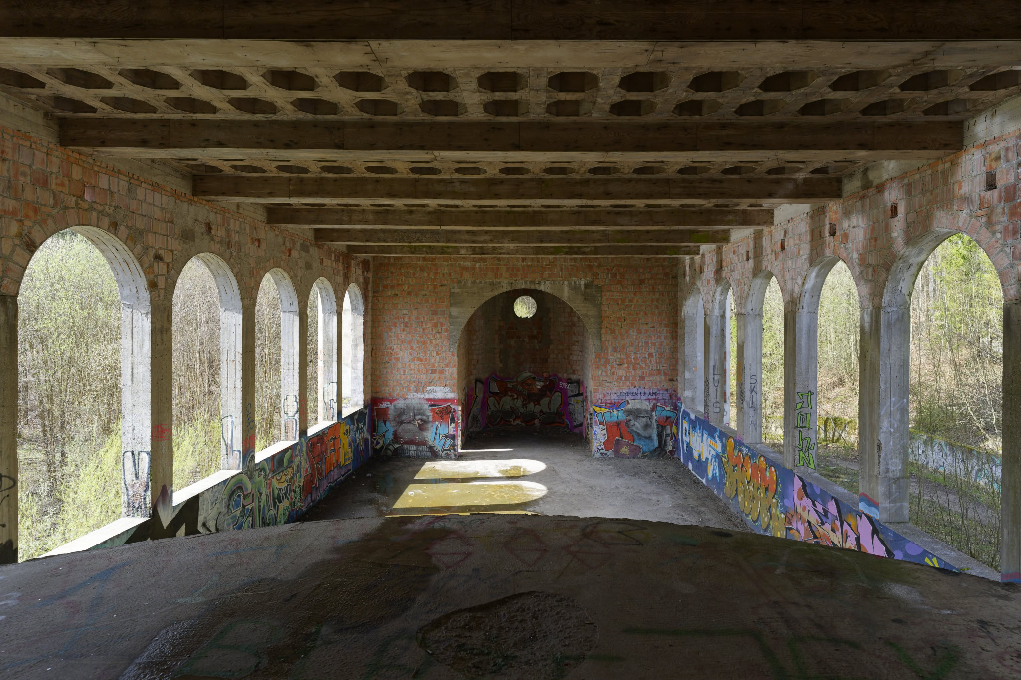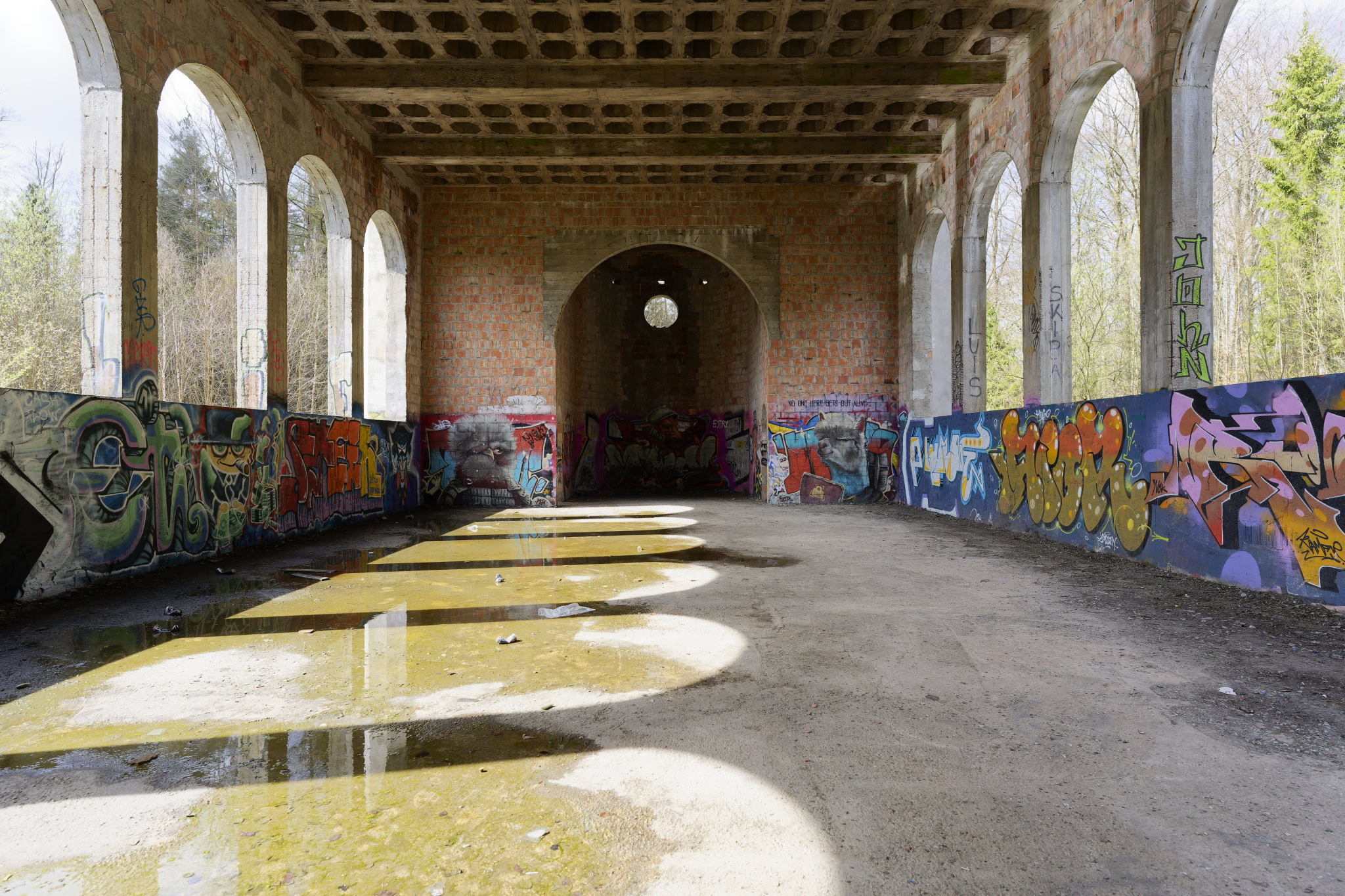 Wie der Teich aber einmal hübsch werden sollte, ergibt sich mir nicht. Diese Betonwanne mit ungleichen höhen ist überhaupt nicht einladend. Aber wer weis schon, wie es hätte am Ende aussehen sollen.